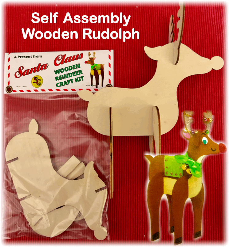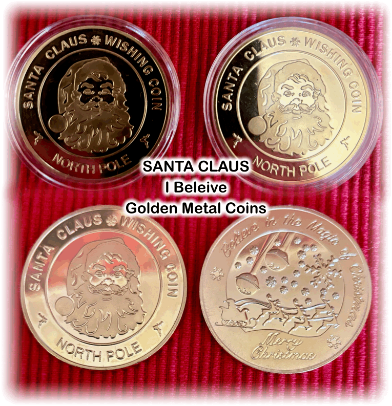 A metal 2" Golden Santa I Believe Coin - A Wooden Rudolph Kit.